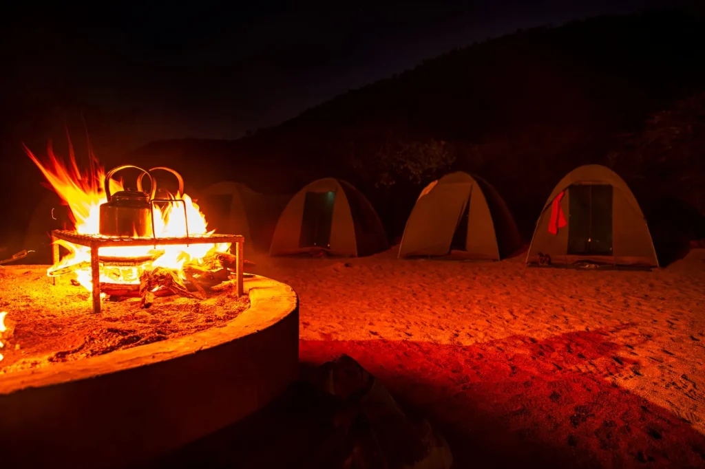 Arrive at the rustic campsite and settle into lightweight netted tents for your first night. Take this evening to relax, acclimate to the desert environment, and prepare for the days ahead with an introductory briefing and a welcoming braai under the stars.